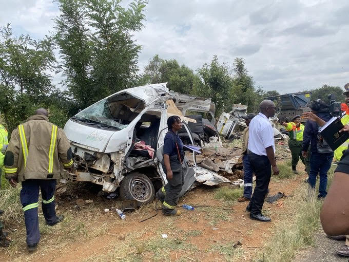 to their uniforms, it is confirmed that the students were from three different public schools and two private schools. The accident occurred at 7AM as the transport vehicle had collided with a side tipper truck. The driver of the transport vehicle is currently in hospital as a case of culpable homicide is currently under investigation.